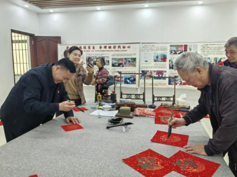翰墨迎春,银发挥毫送福。活动最后,中心银发人才志愿服务队在退休党支部学习活动中心开展写春联、送福字志愿服务活动。服务队充分发挥退休党员们的书法特长,以笔为媒、以墨传情,将组织的关怀和温暖融入一笔一划之中,一幅幅对仗工整、寓意吉祥的春联福字,展现了退休党员的文化素养与特长风采,更彰显了他们发挥余热、愿为单位贡献力量的责任与担当。大家一边欣赏书法,一边话家常、忆往昔,活动中心里暖意融融。